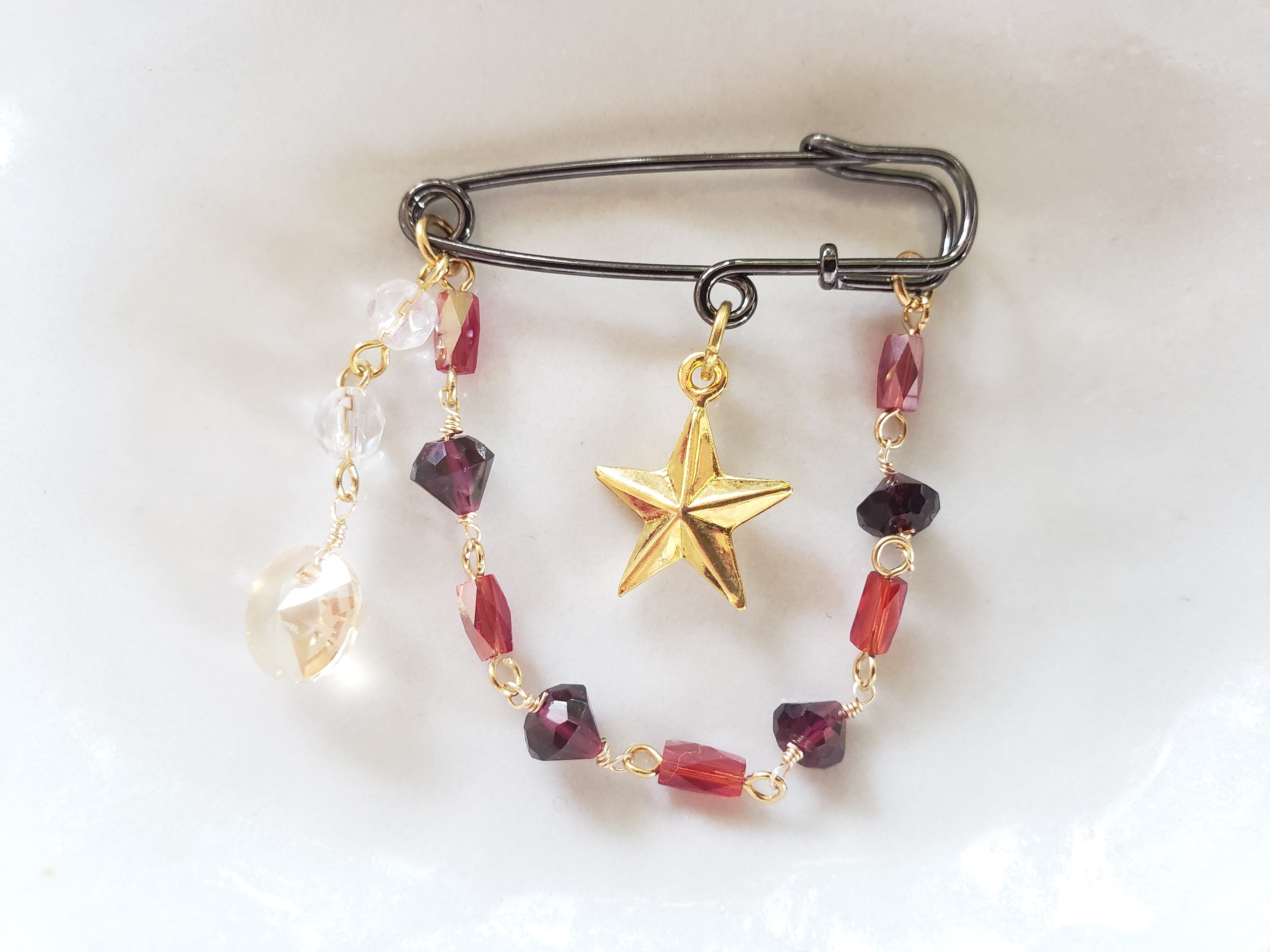 ロードライトガーネット、クリスタル、スワロフスキーストーンを使用しています。