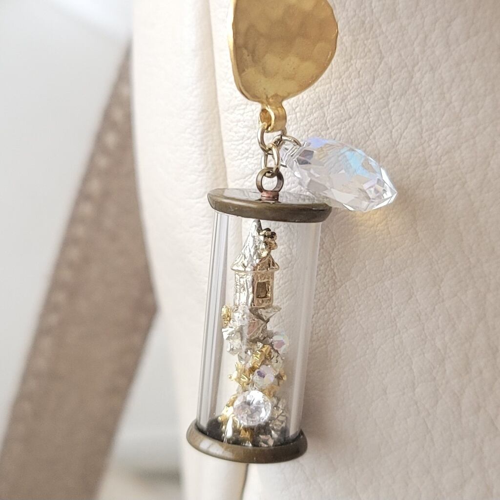 ガラスとキュービックジルコニアをひと粒使用しています